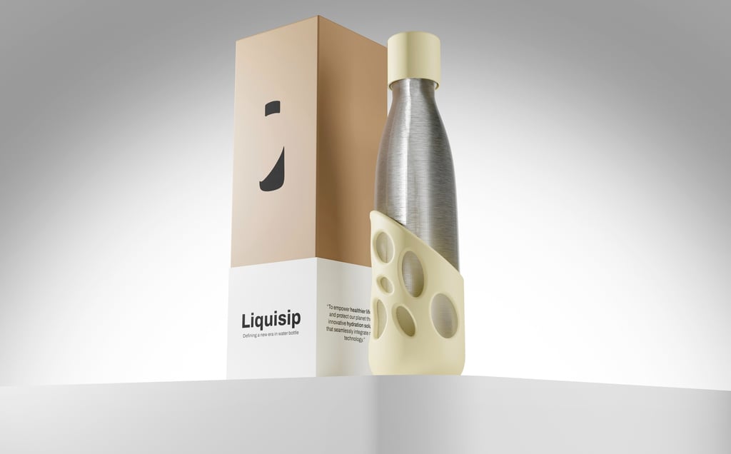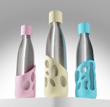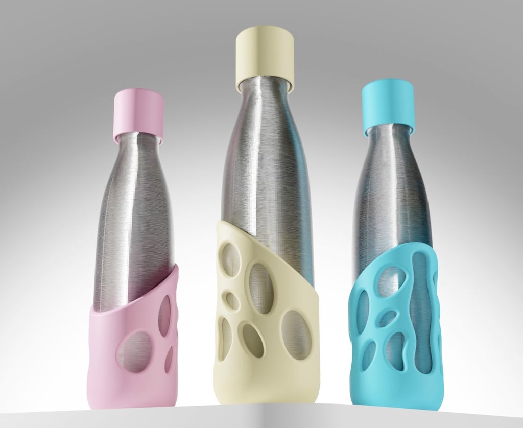 The 3D-printed cover is designed to wrap around the lower half of the bottle, offering a smooth ergonomic grip while adding a sense of visual lightness. By partially revealing the brushed stainless steel beneath, we’ve created a striking contrast between raw metal and crafted polymer which inviting you to feel both nature and innovation in one hand.